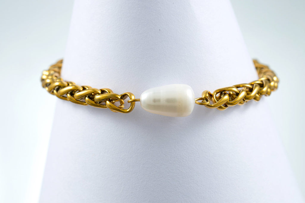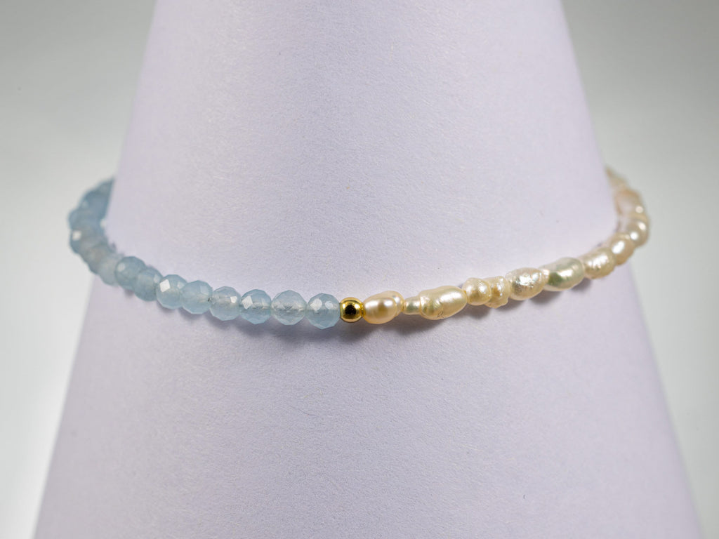 Aquamarine and Freshwater Pearl Bracelet with Gold vermeil Chain