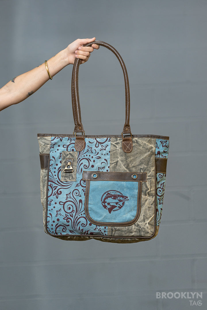 Canvas Tote Bag with Fish & Ornaments