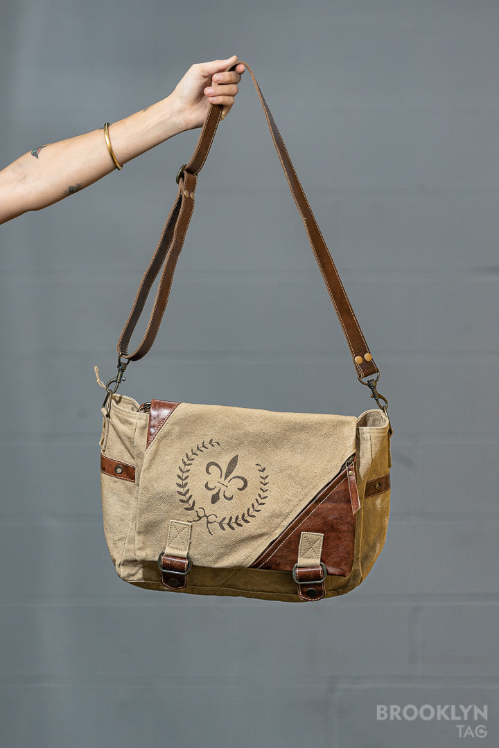 Fleur de Lis Crossbody Canvas Bag
