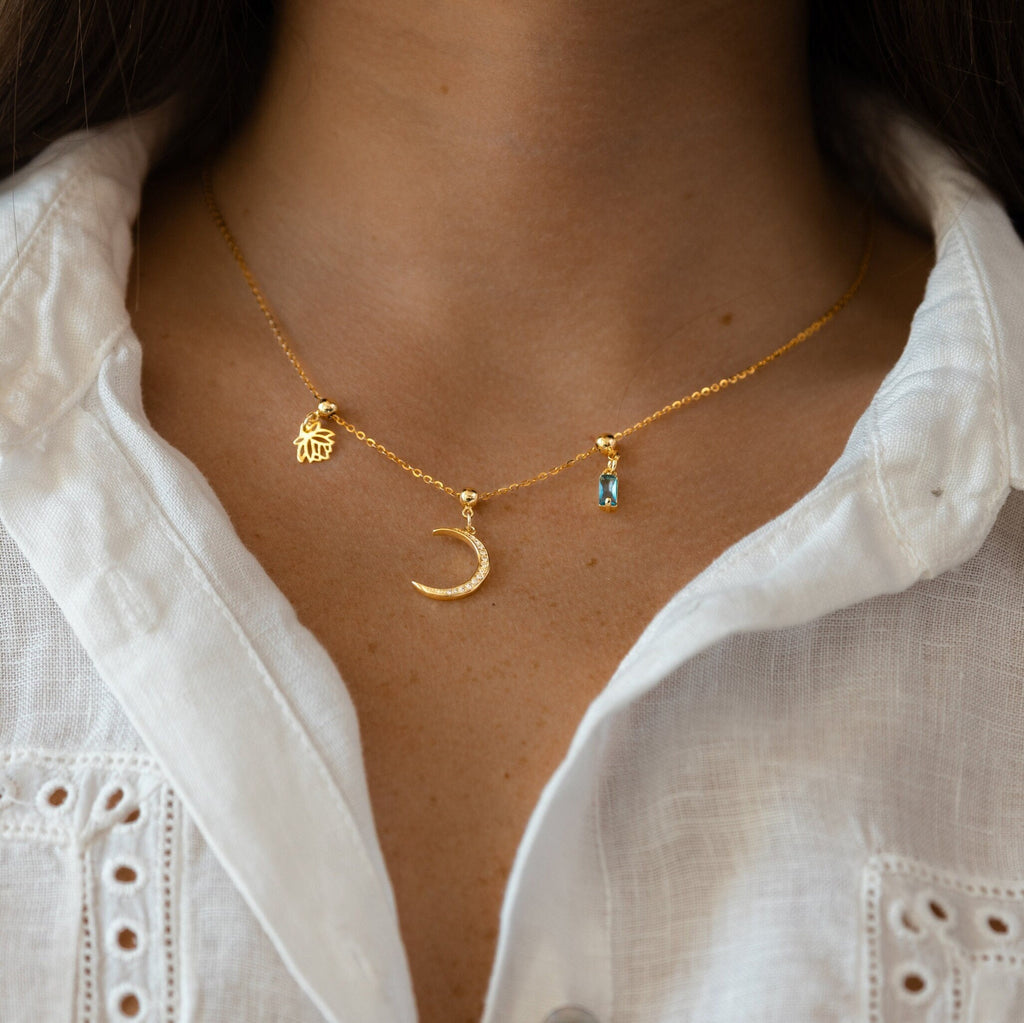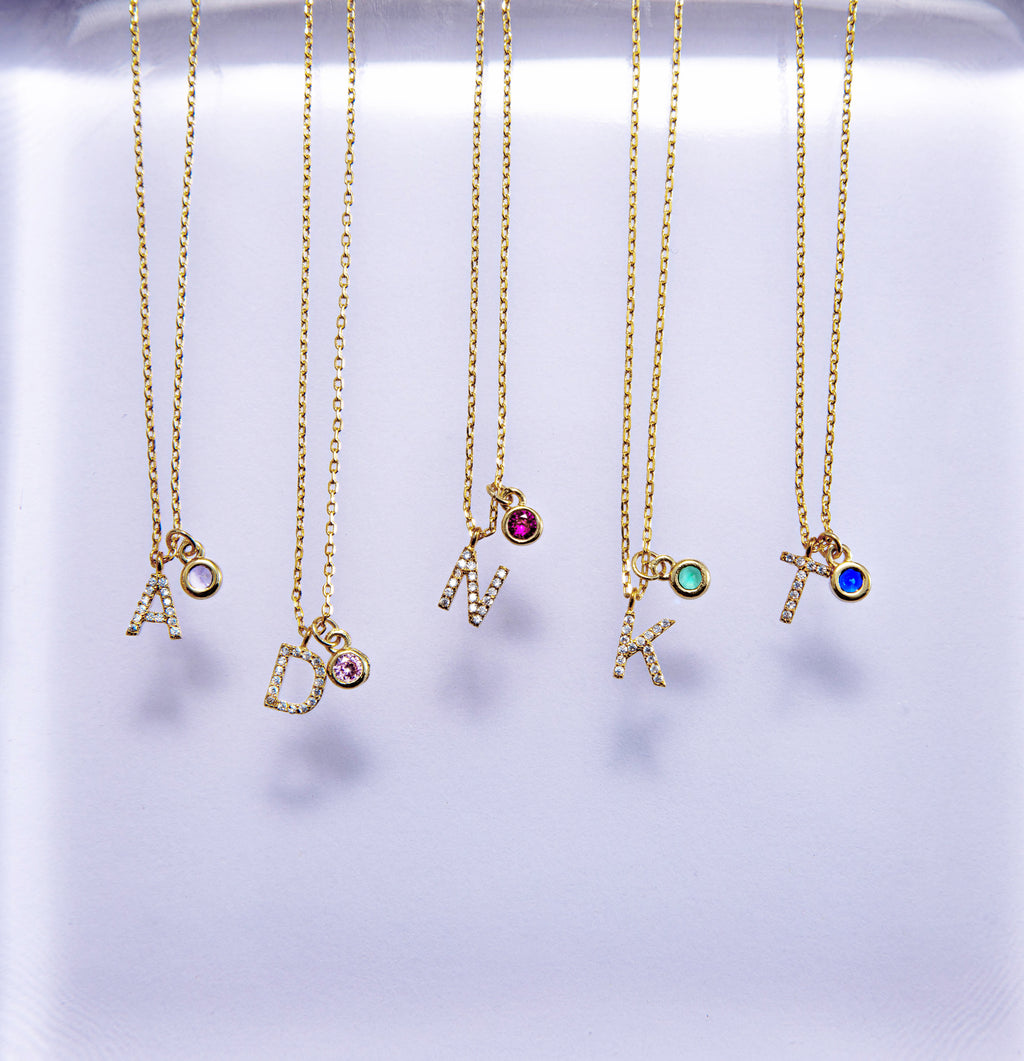 Paved Tiny Initial Necklace Gold Plated with Zircon
