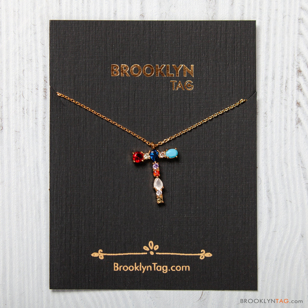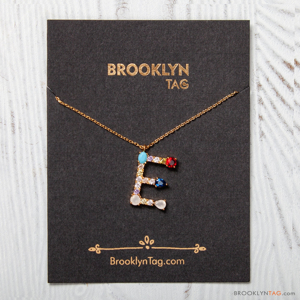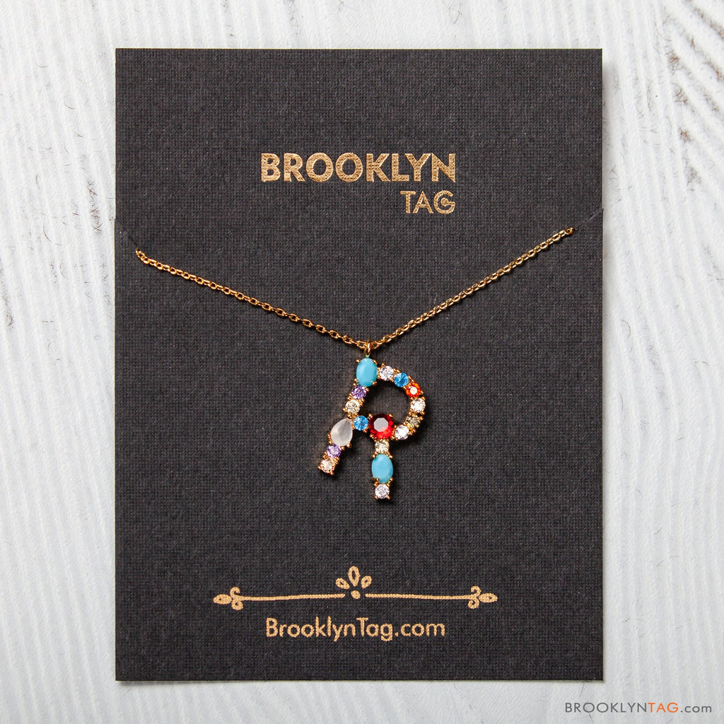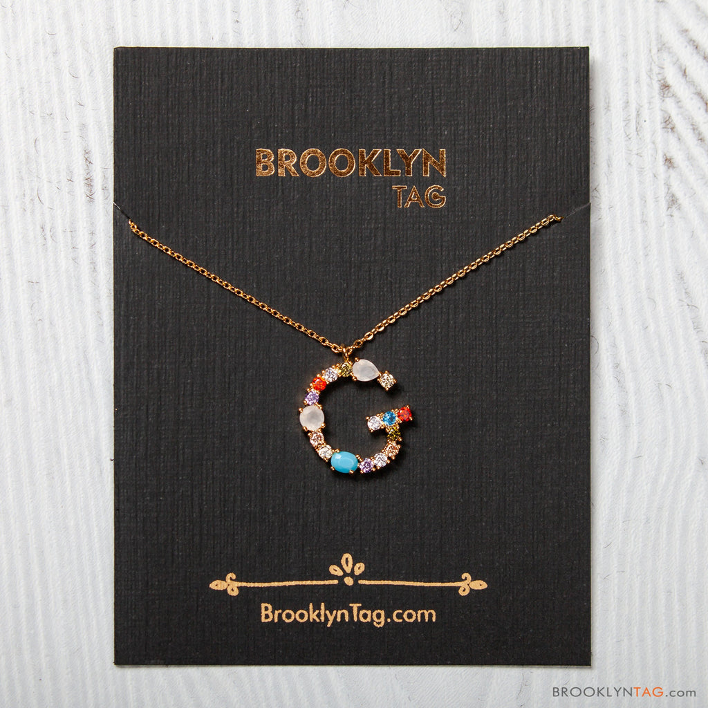 Initial in Colorful Zircon Oval Necklace Gold Vermeil