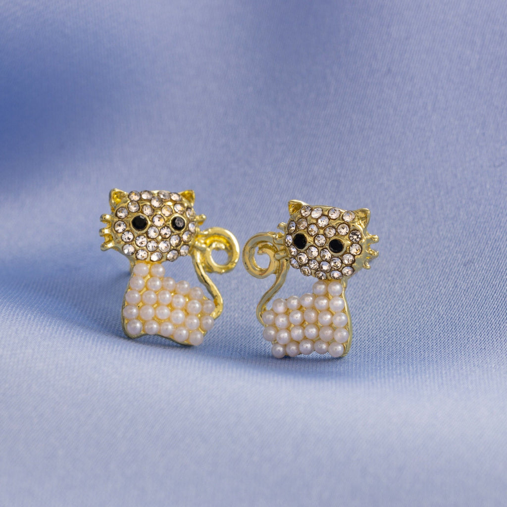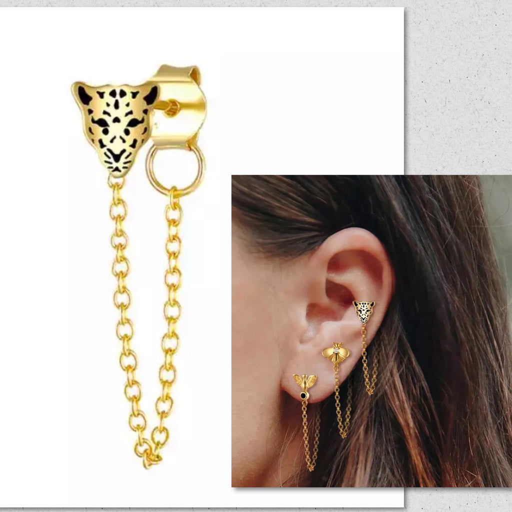 Leopard studs with Pearls. 14k Gold Plated Cubic Zircon jewelry